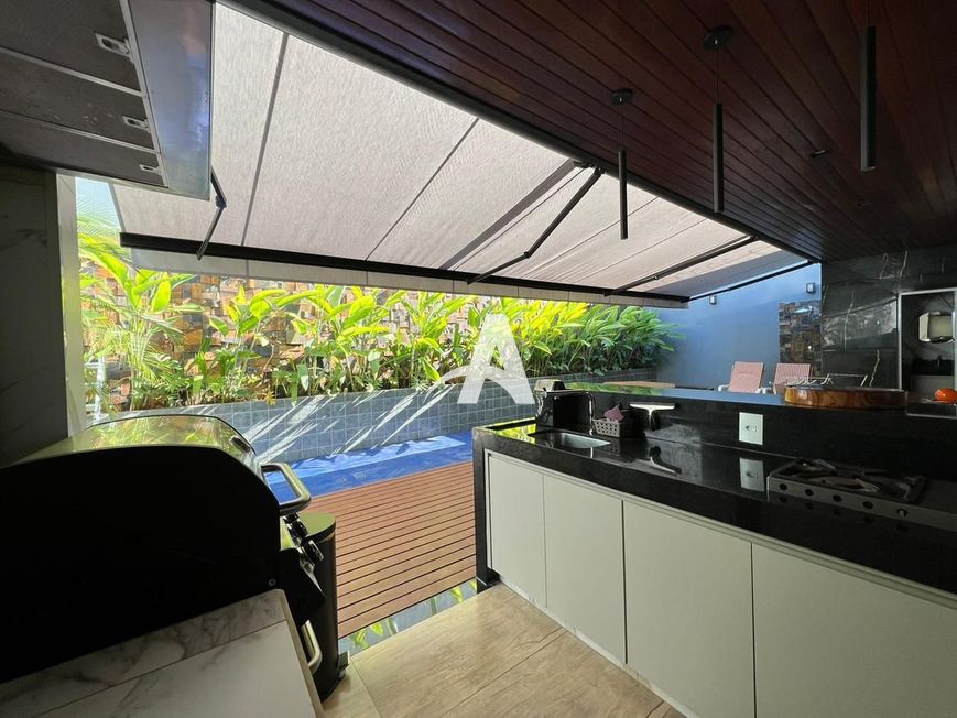 Todos os vidros, boxes e espelhos já estão instalados.Dispõe de área gourmet completa com toldo automatizado de 10x2 metros, canil com esgoto próprio, cortinas em todos os cômodos e cortina da sala automatizada.