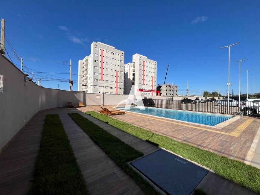 O condomínio oferece portaria 24 horas, salão de festas, piscina, playground, espaço fitness, quadra esportiva, gás encanado, elevadores.